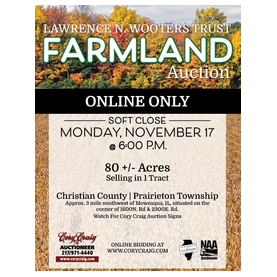Announcements day of auction take precedence over printed matter. Information in the ad is considered accurate, however, it is subject to verification and no liability for errors or omissions is assumed. Tract is being sold by the acre x’s 80