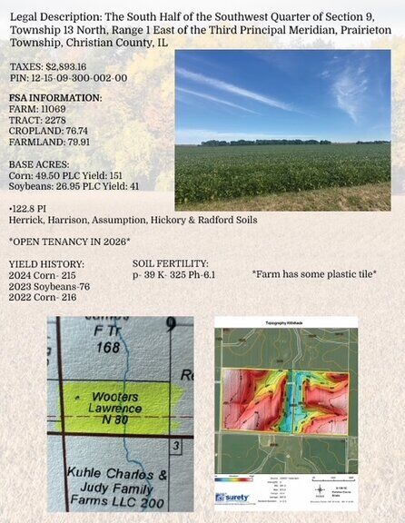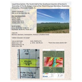 The South Half of the Southwest Quarter of Section 9, Township 13 North, Range 1 East of the Third Principal Meridian, Prairieton Township, Christian County, IL