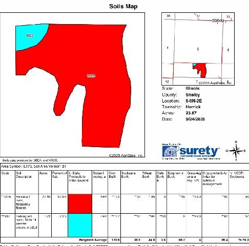 The Southwest Quarter of the Southeast Quarter of Section 6, Township 9 North, Range 2 East of the Third Principal Meridian, in Herrick Township, Shelby County, IL.